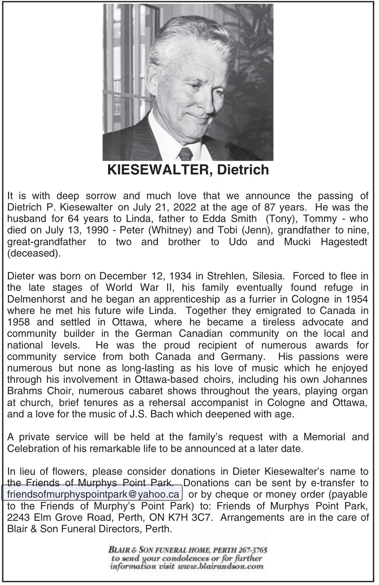 Am 21. Juli ist Dietrich Kiesewalter, ehemaliger Präsident der GLS Ottawa verstorben. Unser Beileid gilt der Familie und den Freunden von Herrn Kiesewalter.